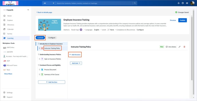 📒Note: If you add an instructor training unit to a course, you must include at least one session in the training before publishing the course.