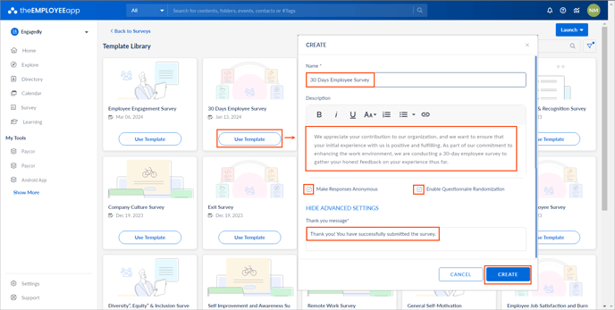 Engagedly offers you predefined survey templates curated by industry experts, which are available in the Engagedly library.